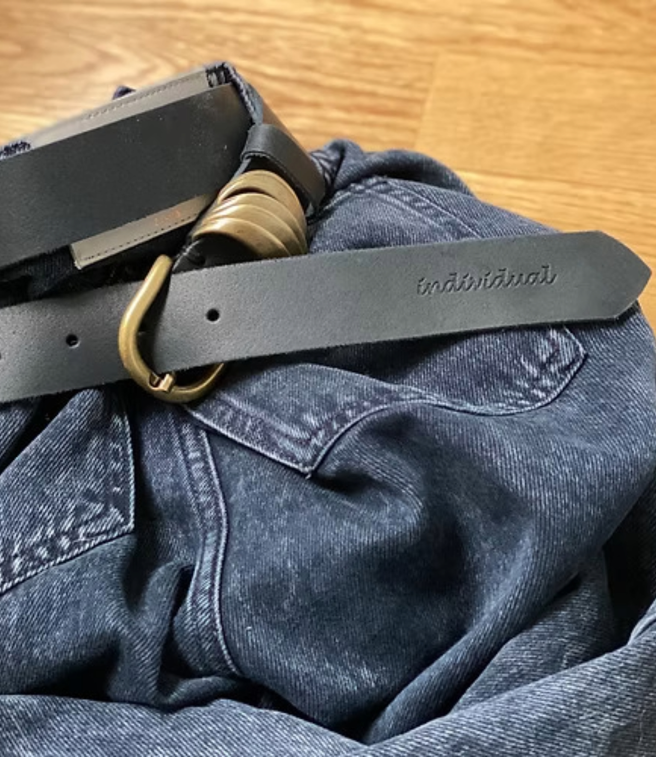 Χειροποίητη δερμάτινη ζώνη με χρυσή μεταλλική αγκράφα.