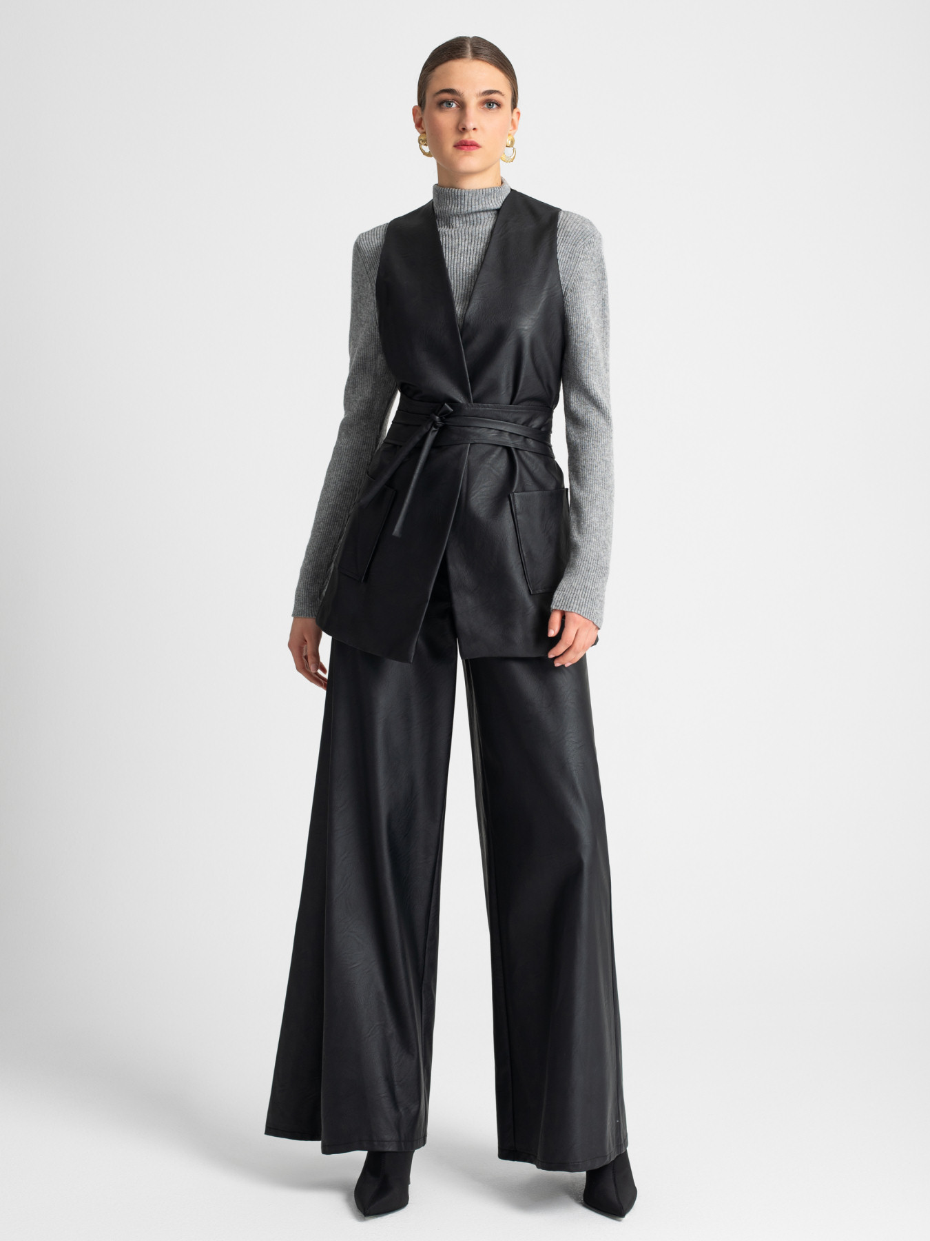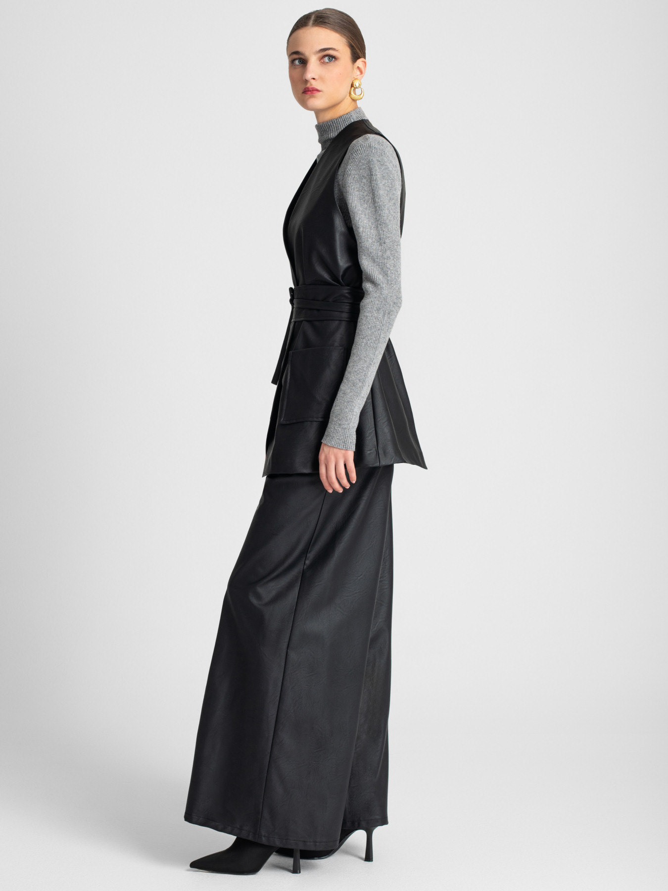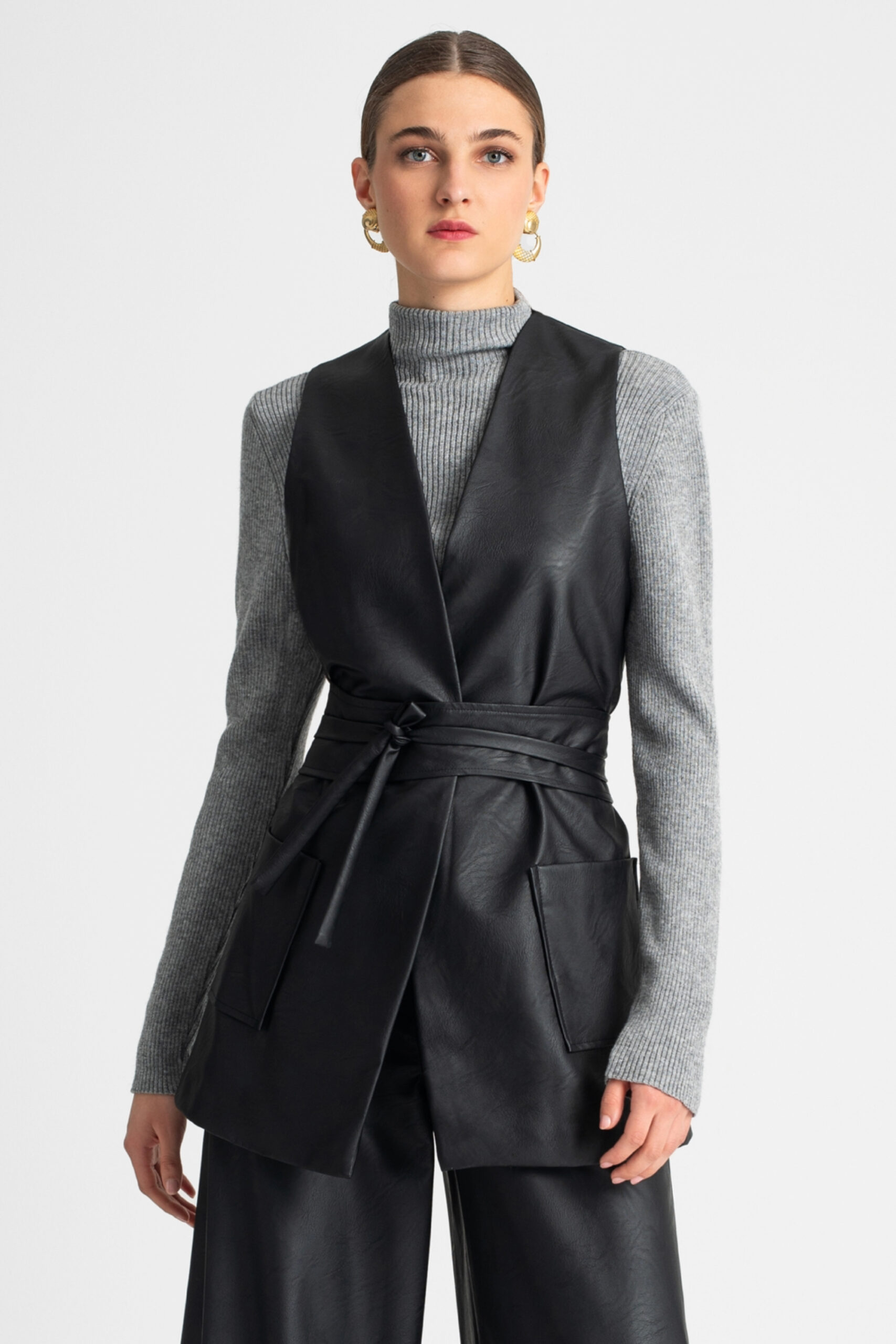 Μoutaki Γιλέκο Eco Leather Μαύρο