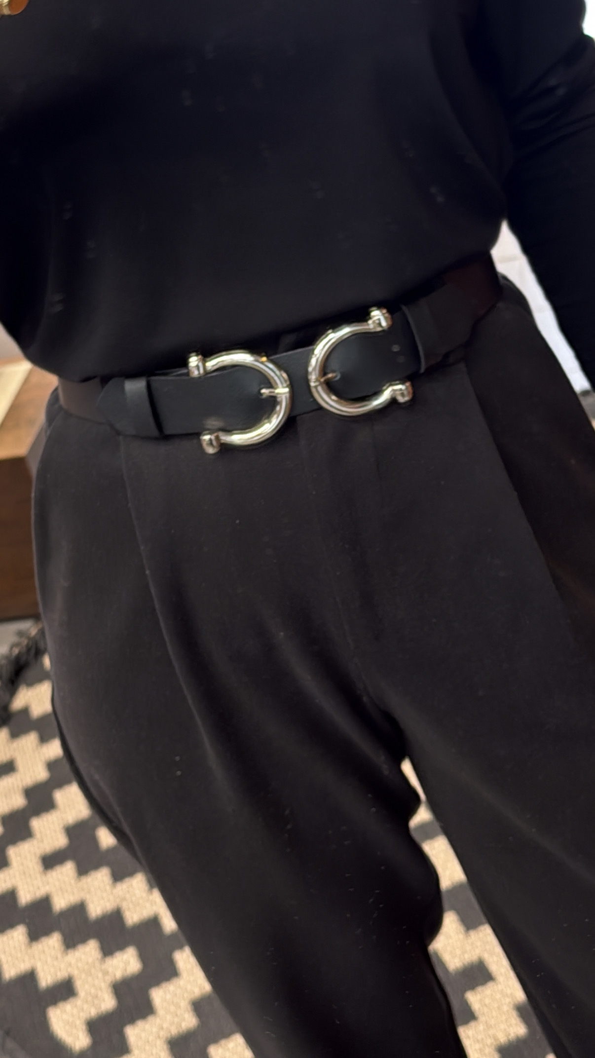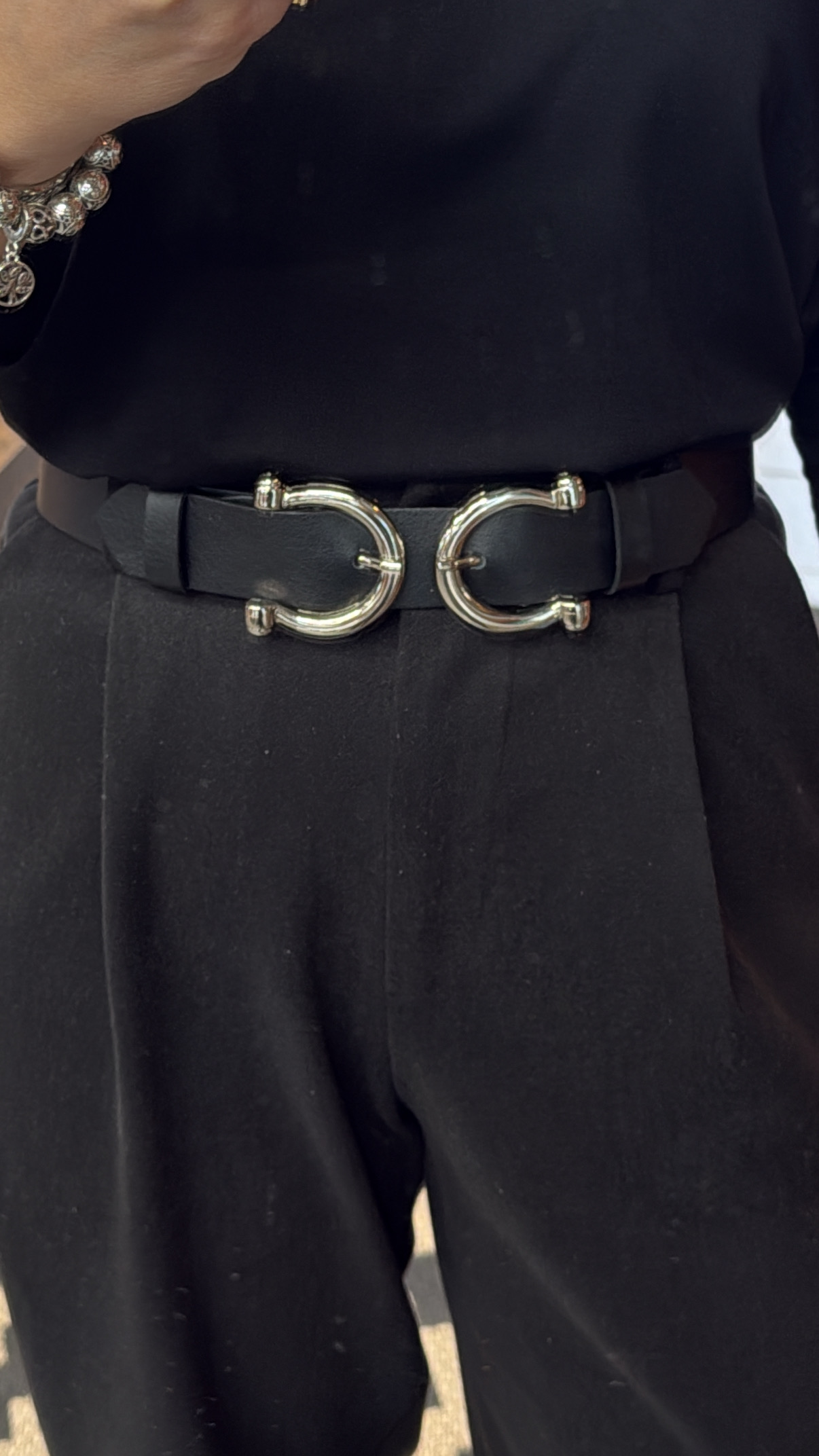 Individual “Footloose” double leather belt Black Nikel
