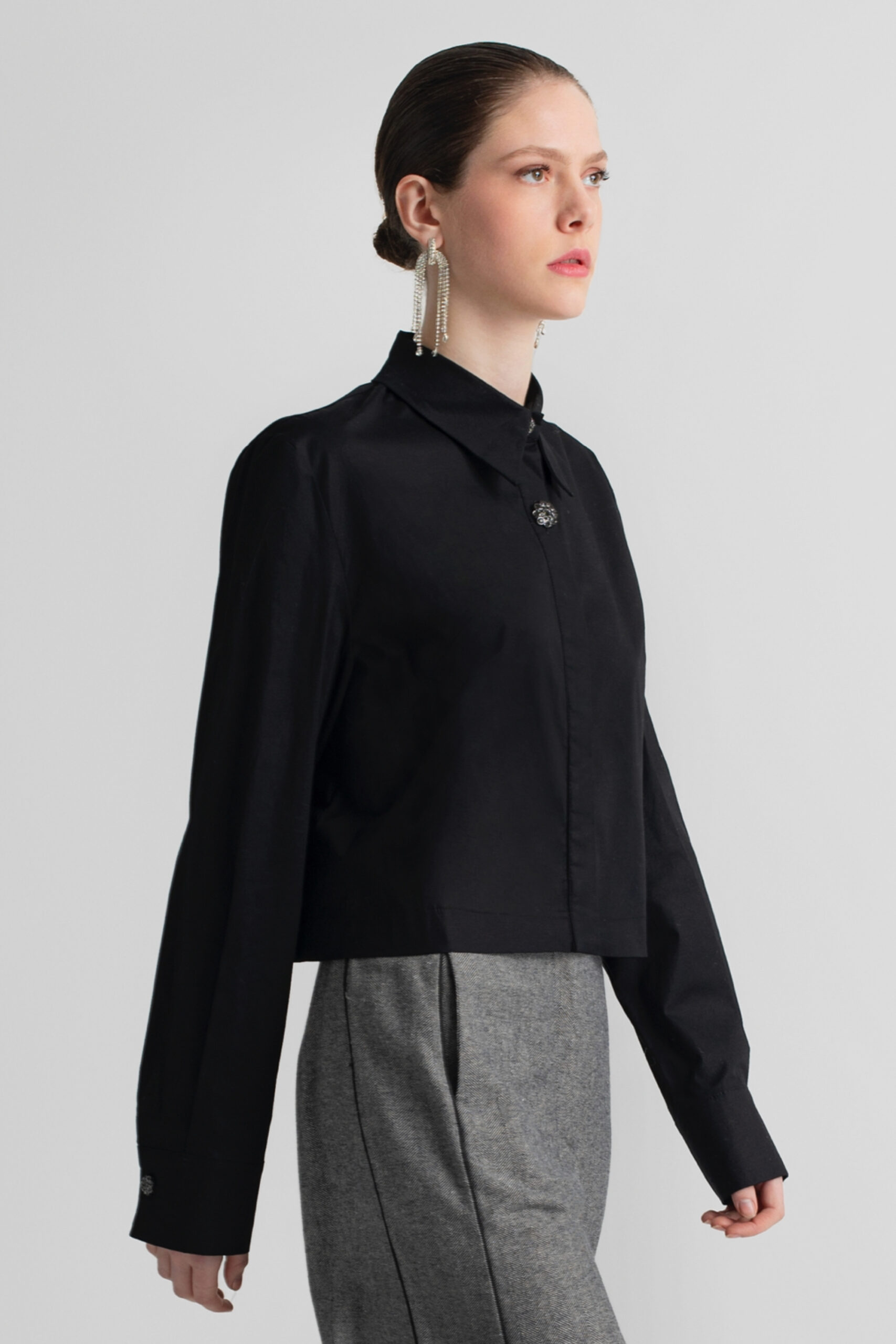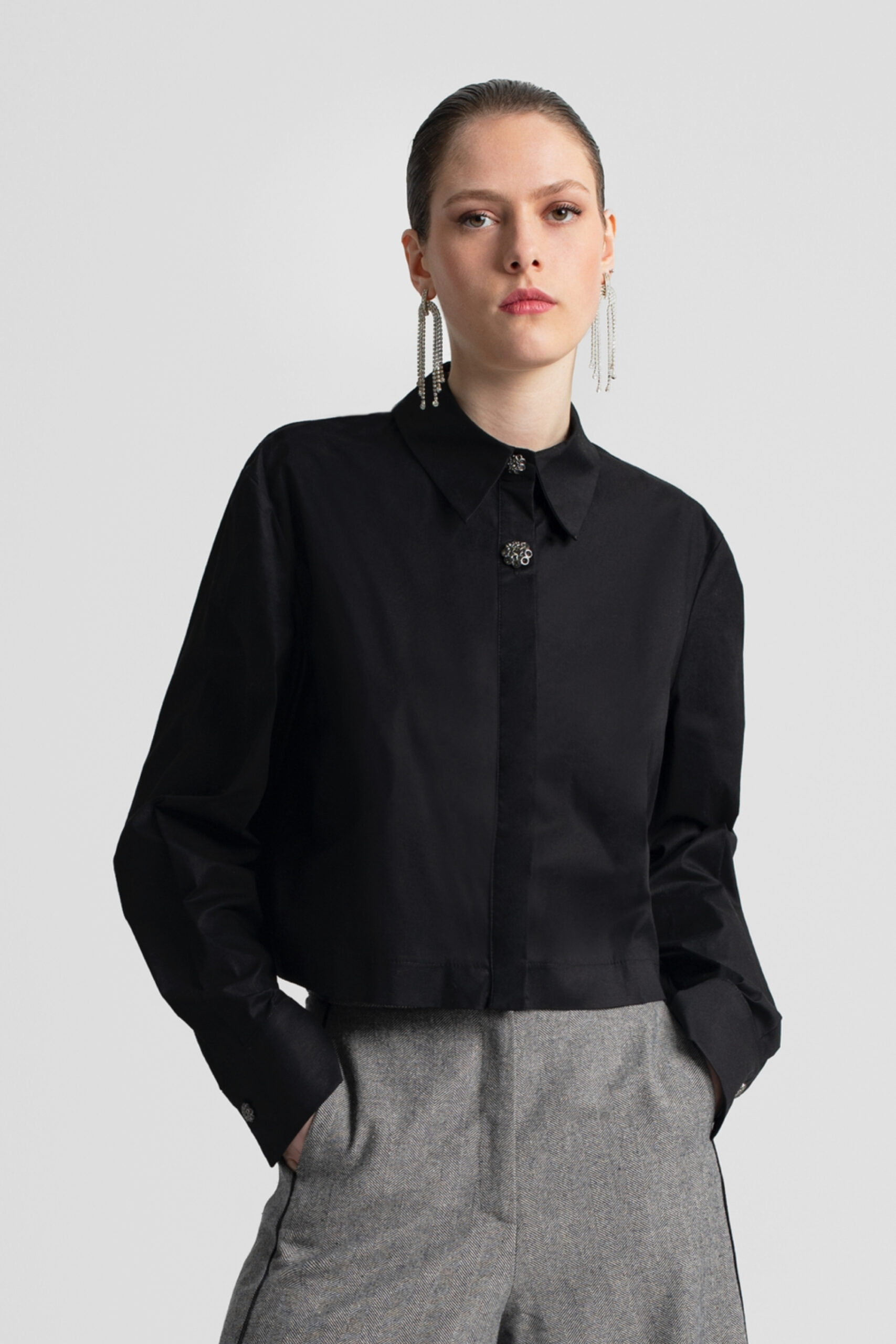 Moutaki Πουκάμισο Crop Μαύρο