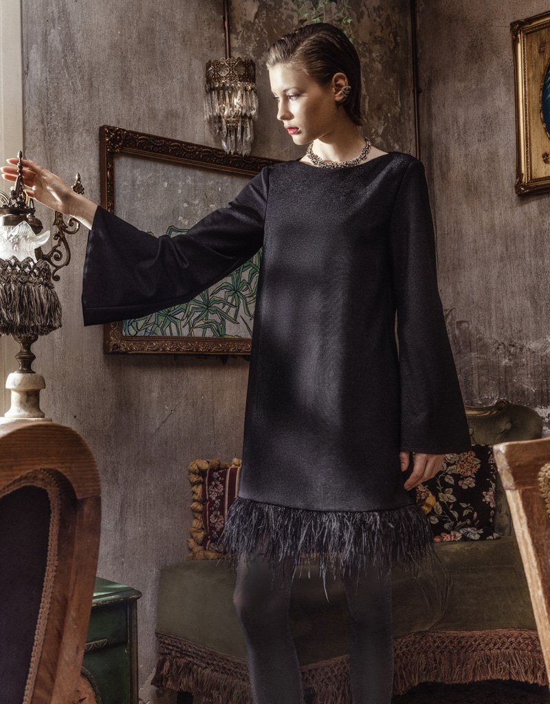Moutaki φόρεμα με πούπουλα στο τελείωμα Μαύρο