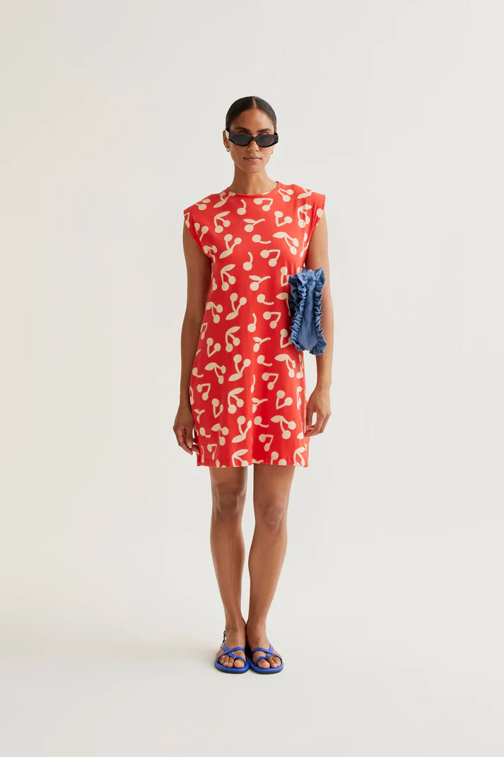 Κοντό φόρεμα από 100% βαμβάκι με print από cherry.
