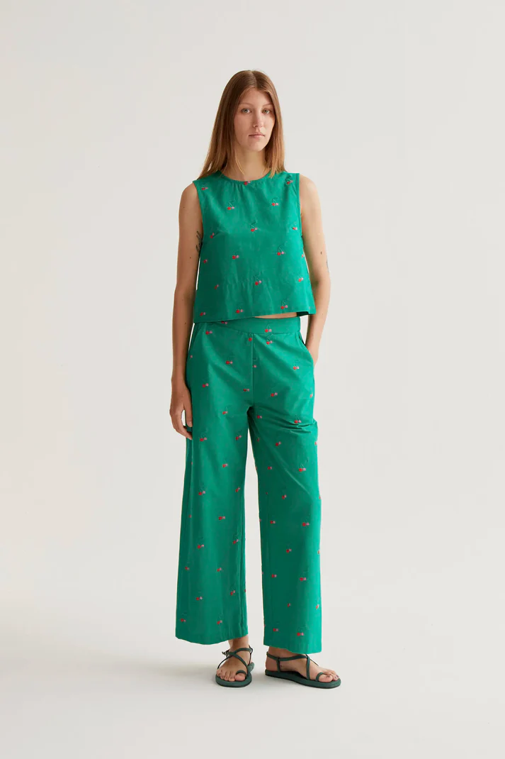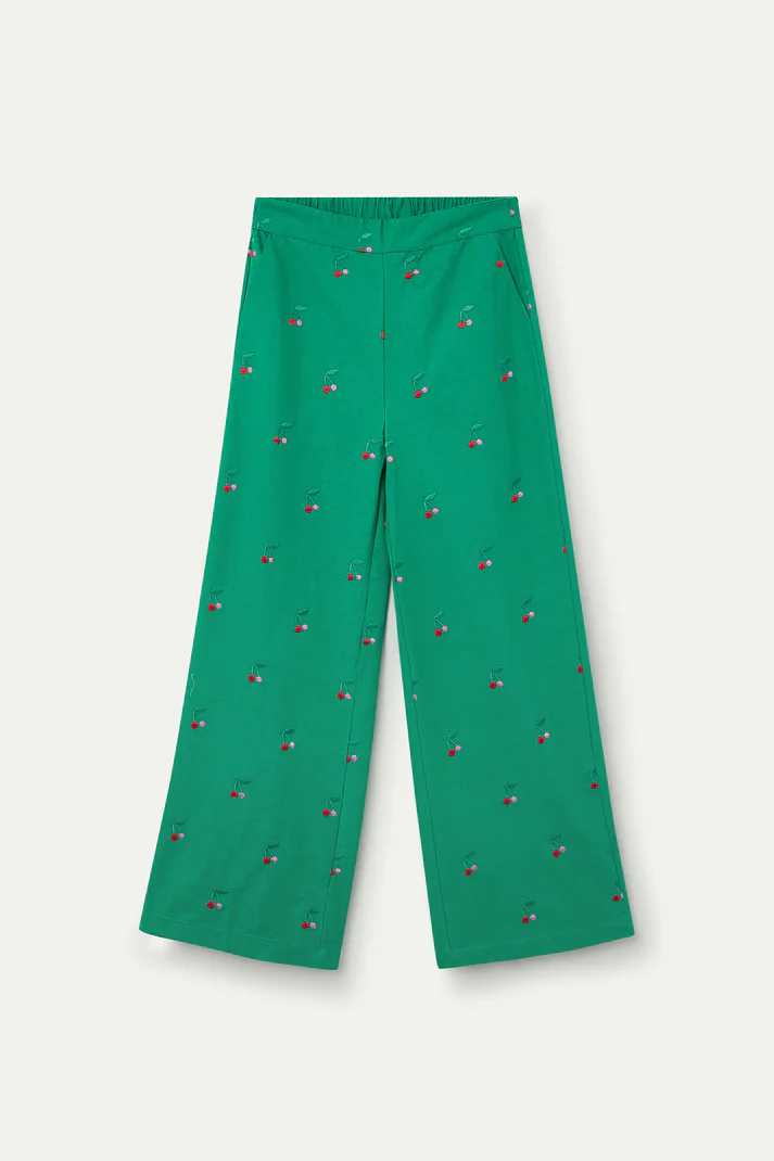 - Πράσινο παντελόνι από 100% βαμβάκι με κέντημα κερασιού.