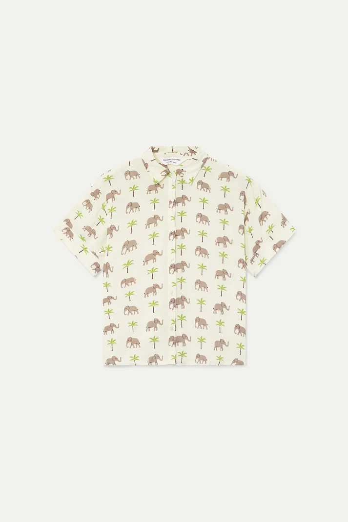 Πουκάμισο από ρεγιόν σε ύφασμα Lenzing Ecovero με στάμπα ελέφαντα.