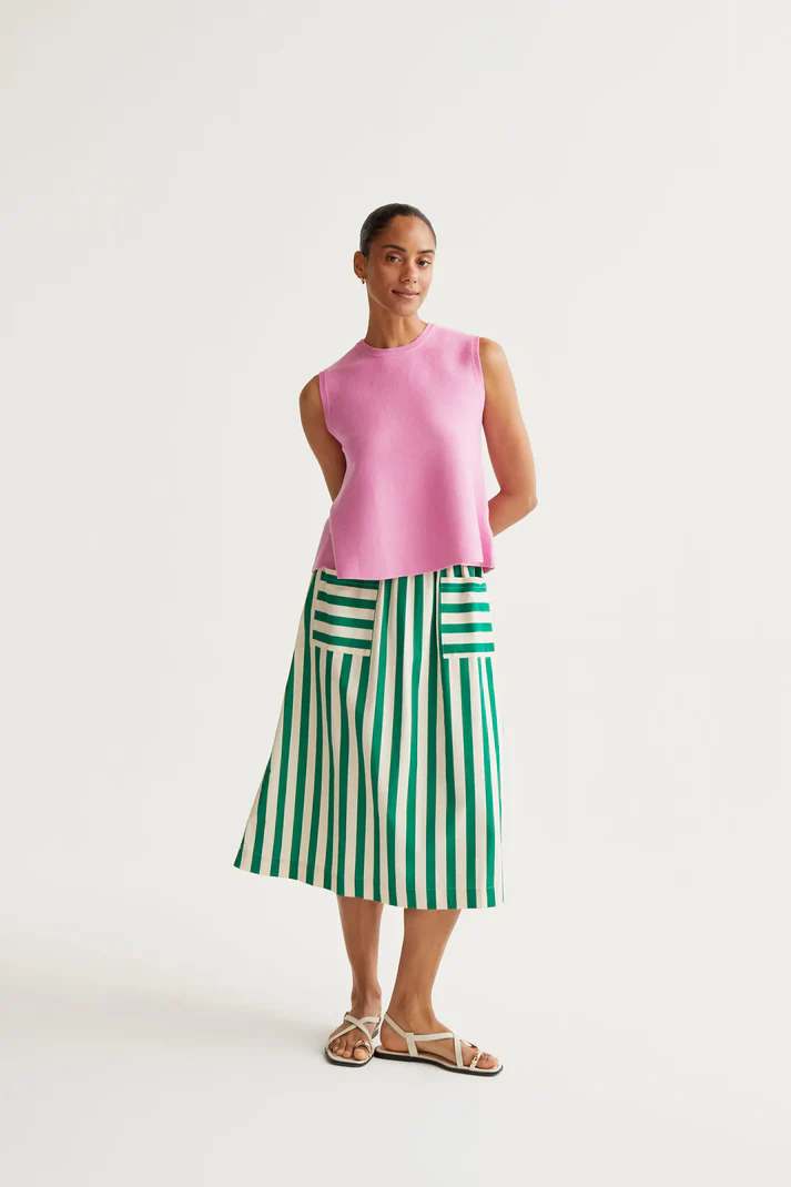 - Μίντι φούστα από 100% βαμβάκι με τύπωμα σε πράσινο μπαμπού.