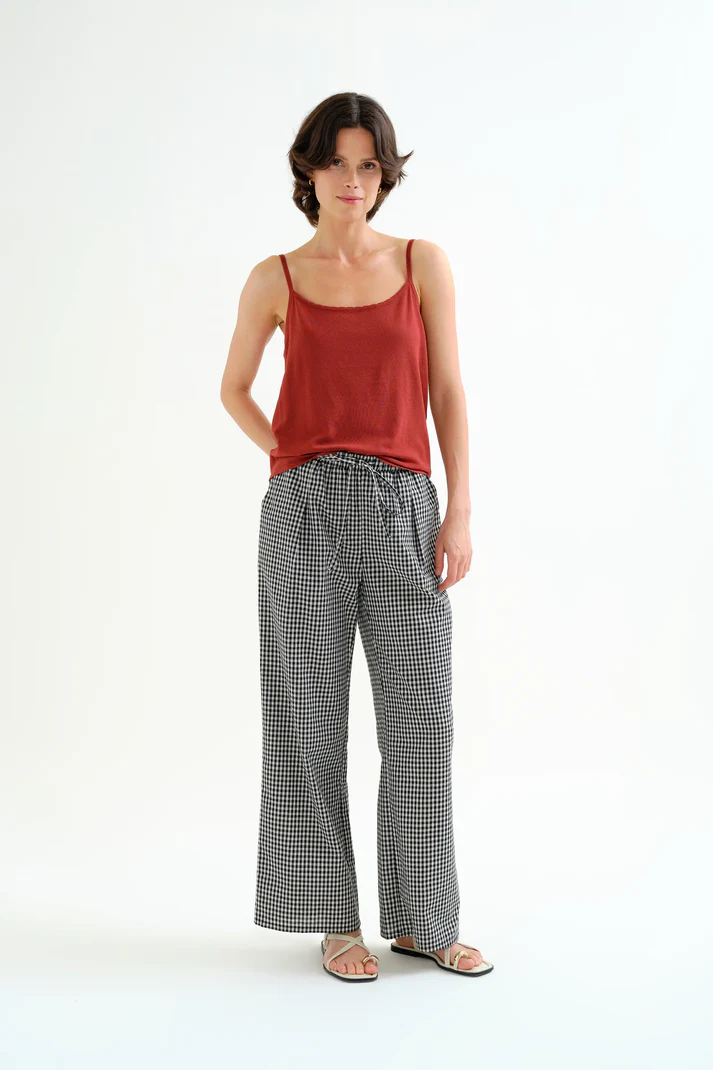 Ίσια λαιμόκοψη με κυματιστή λεπτομέρεια και λεπτές τιράντες. Το μοντέλο έχει ύψος 175 εκ. και φοράει μέγεθος S. 100% Vis