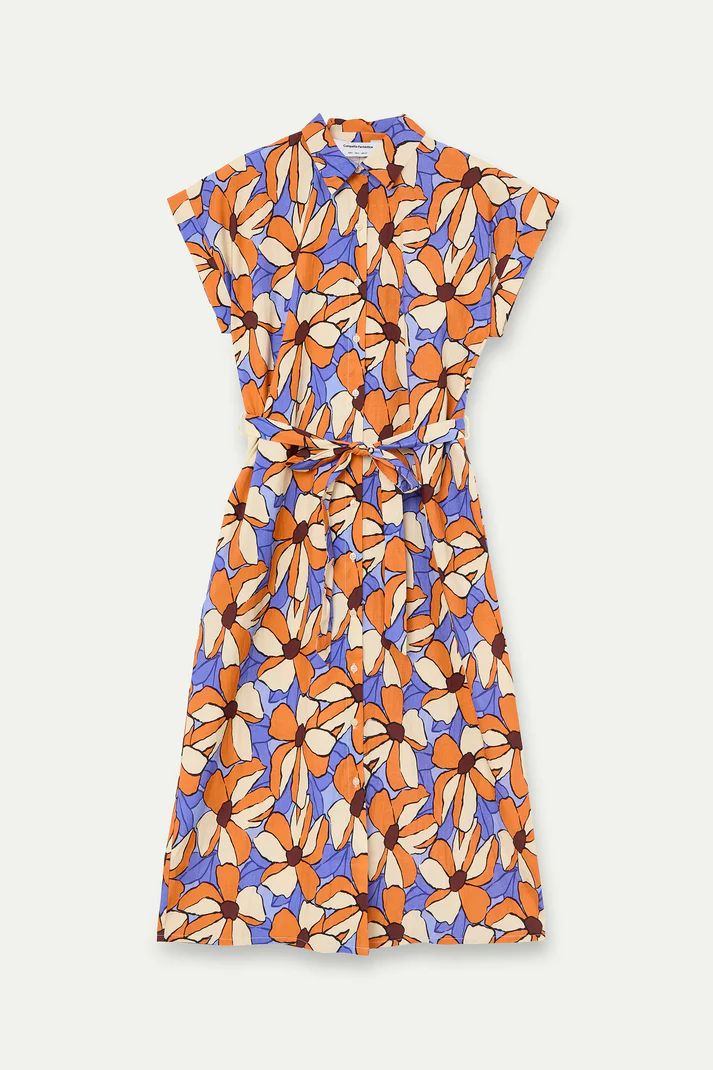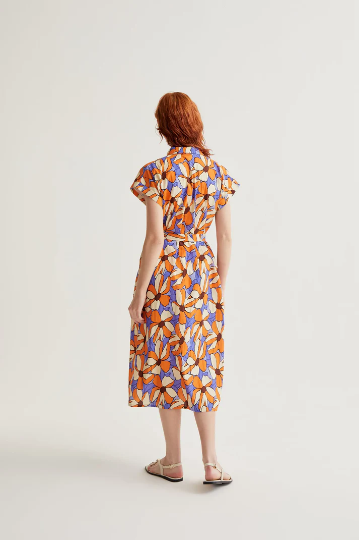 - Μίντι φόρεμα από 100% βαμβάκι με Marigold print.