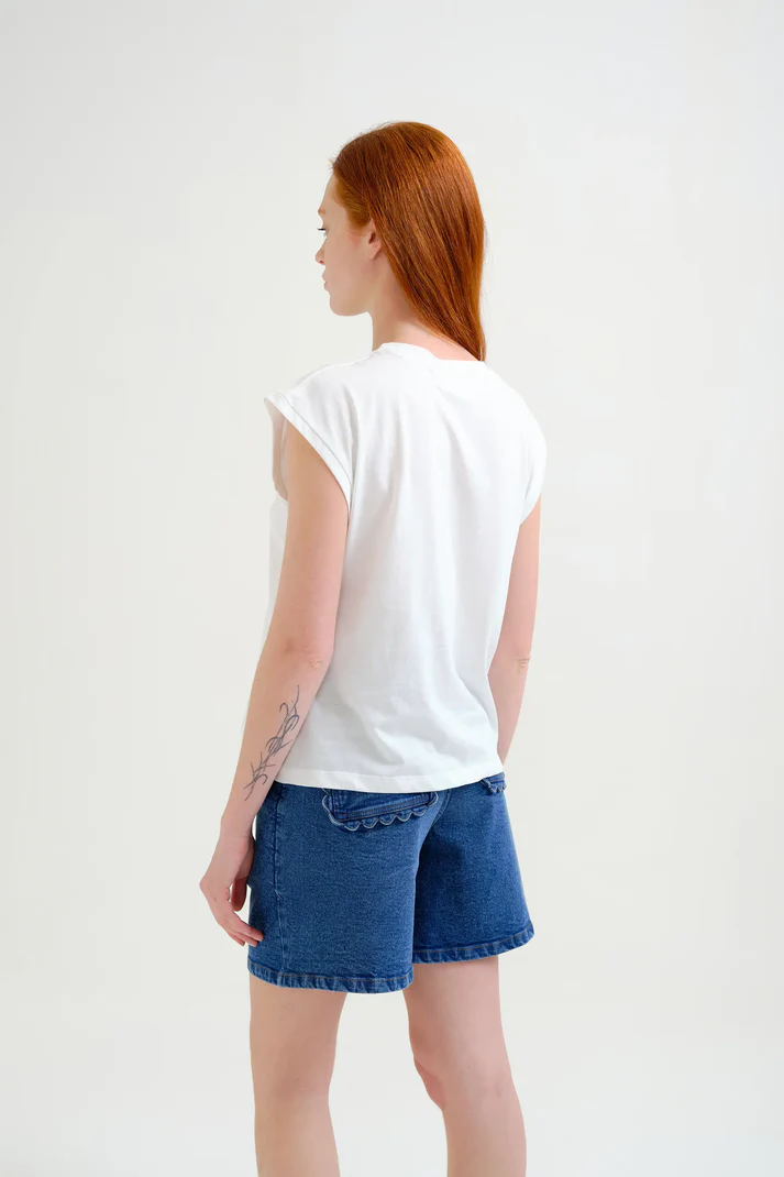 Στρογγυλή λαιμόκοψη και κοντά μανίκια.