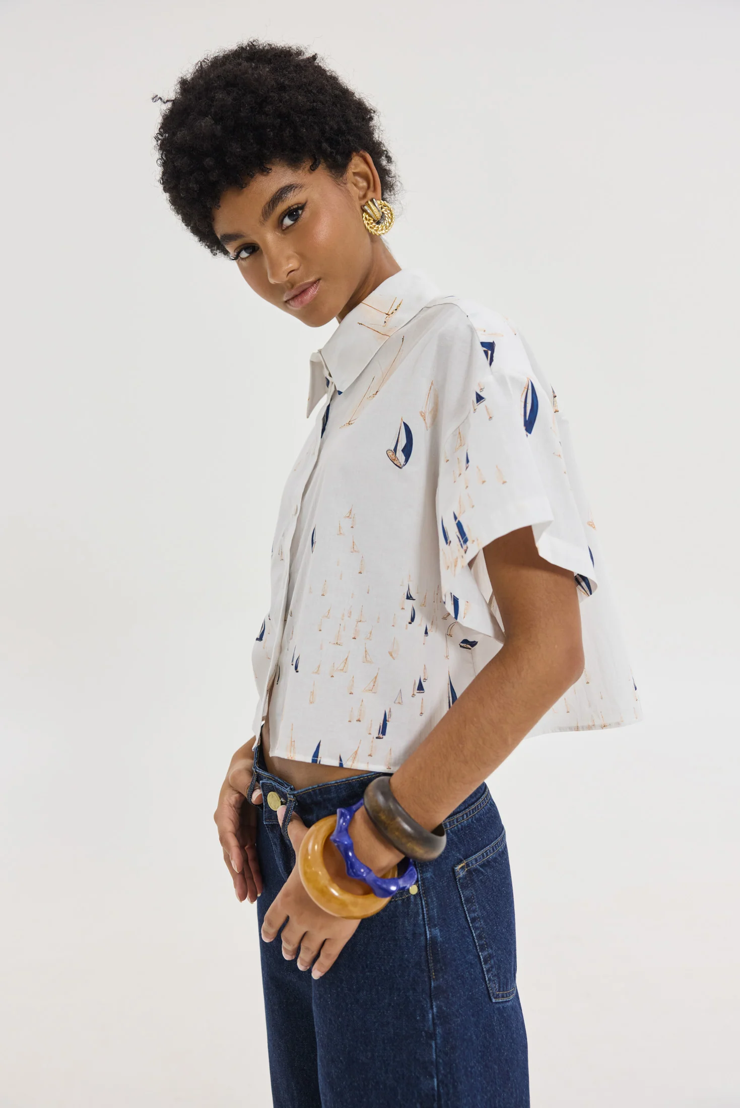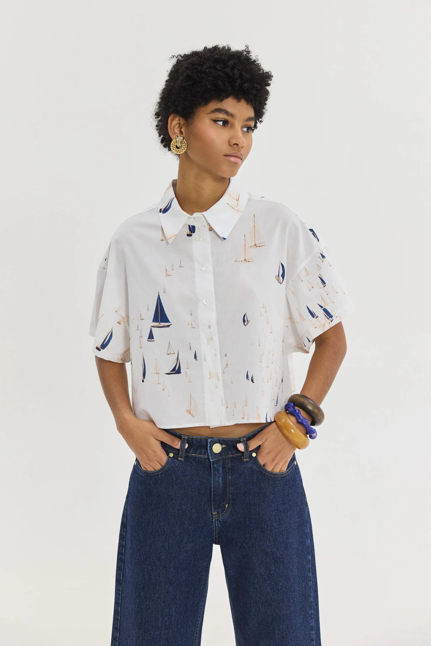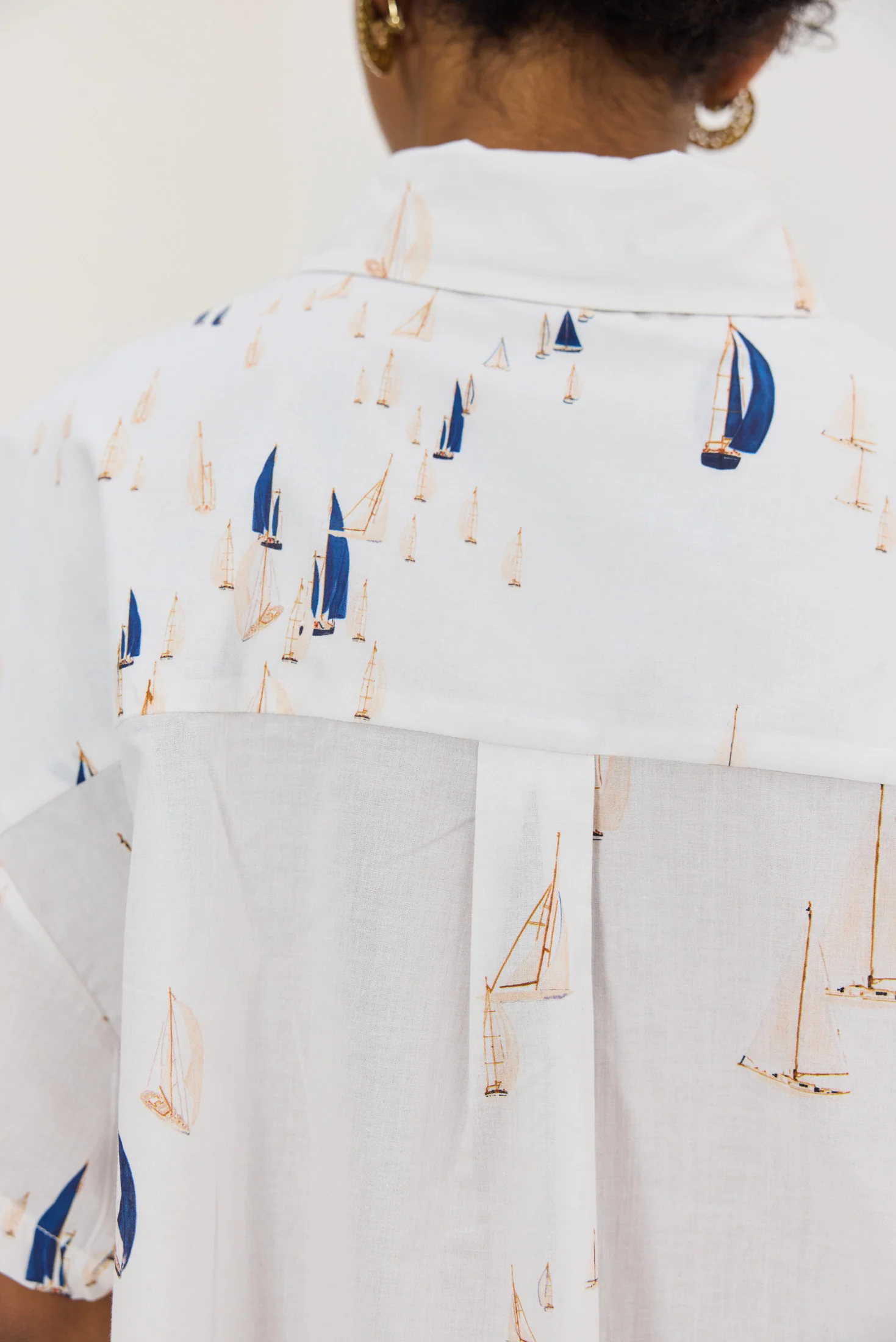 - Pattern με μπλε καράβια σε λευκό φόντο