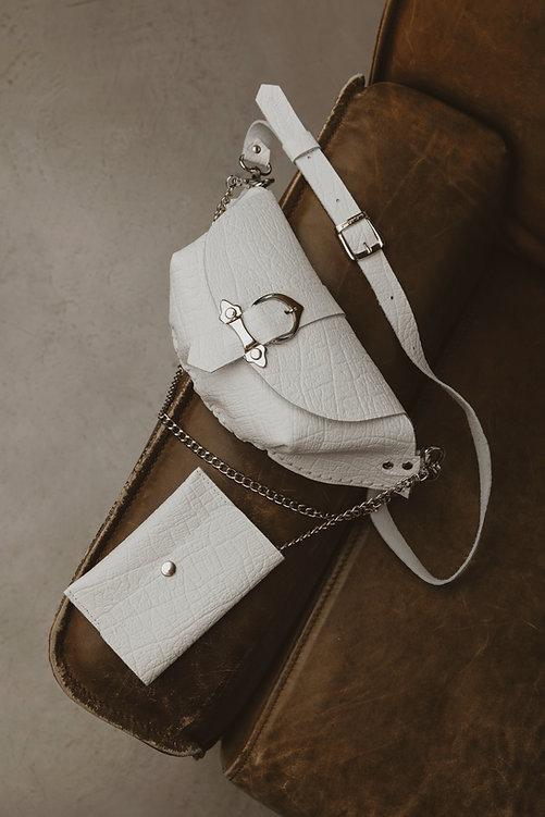 Χειροποίητη δερμάτινη τσάντα μέσης με νίκελ μεταλλικές λεπτομέρειες και μαγνητικό κούμπωμα.