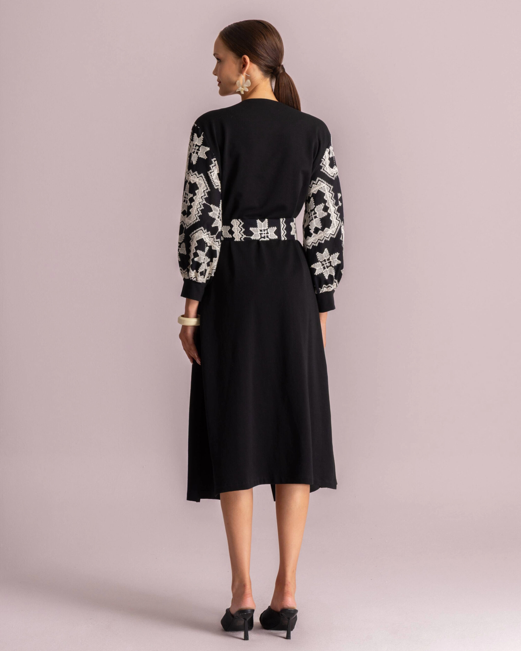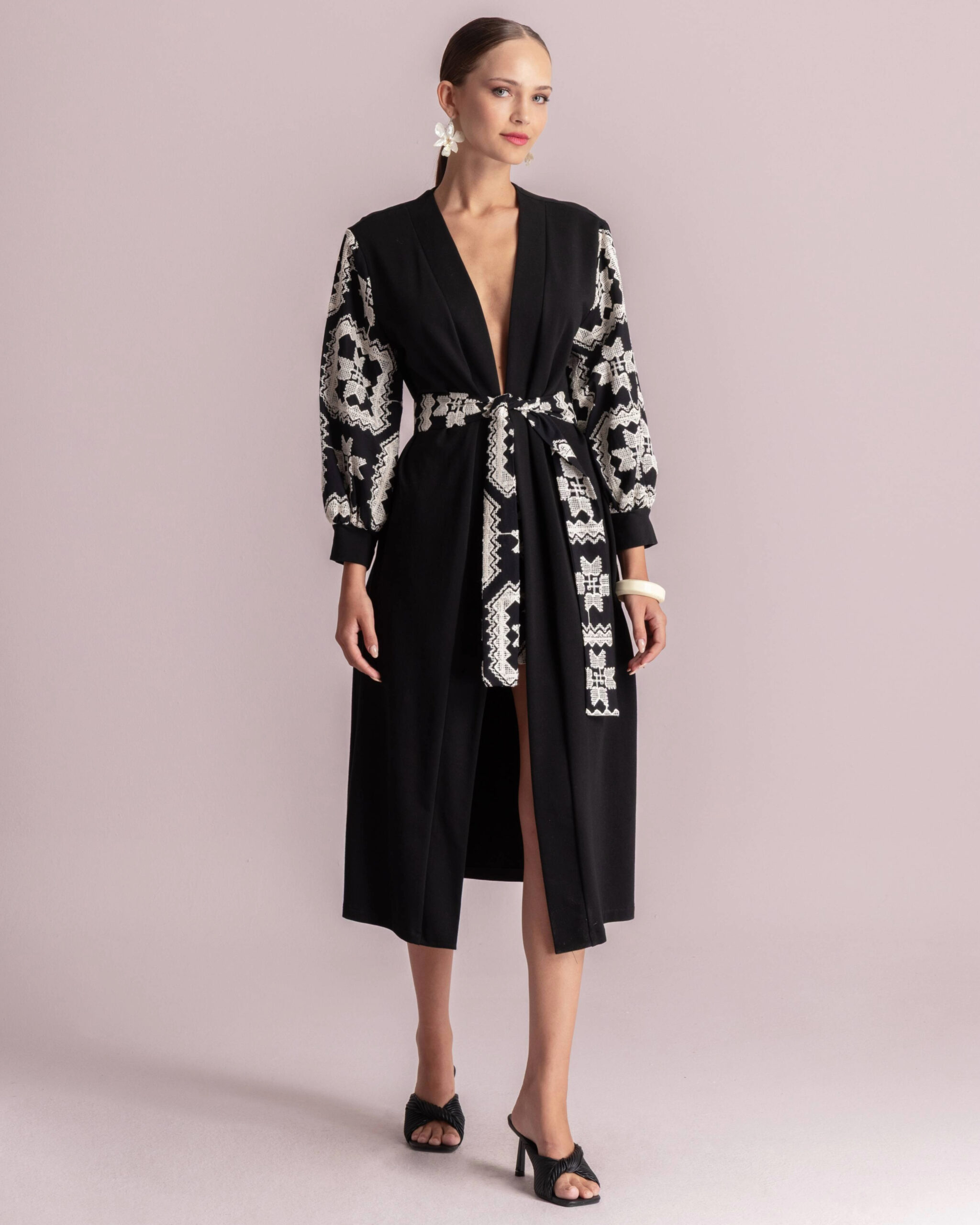 Moutaki Κιμονό με Κέντημα στα Μανίκια Μαύρο