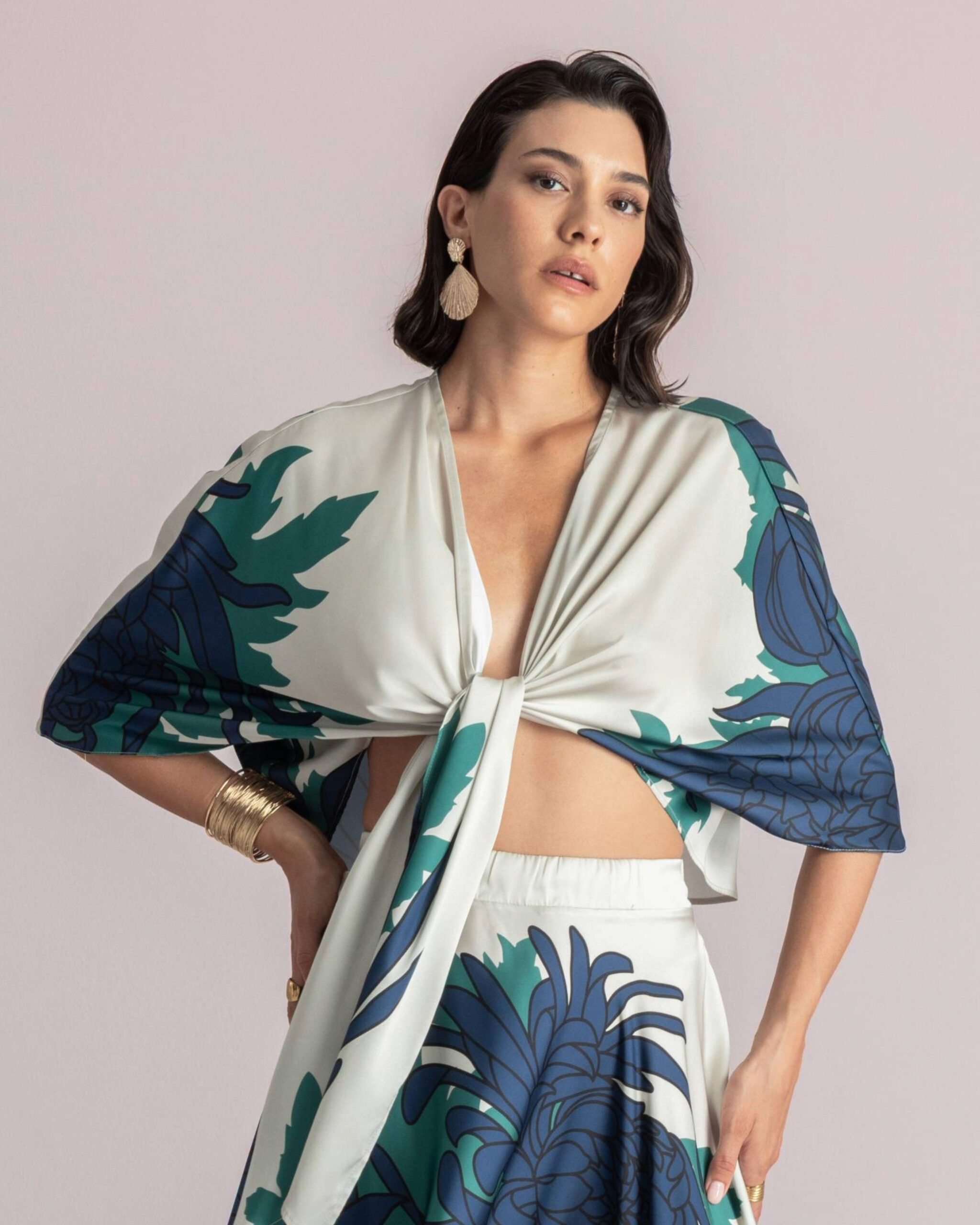 Moutaki Κιμονό με Print Μπλέ/Πράσινο