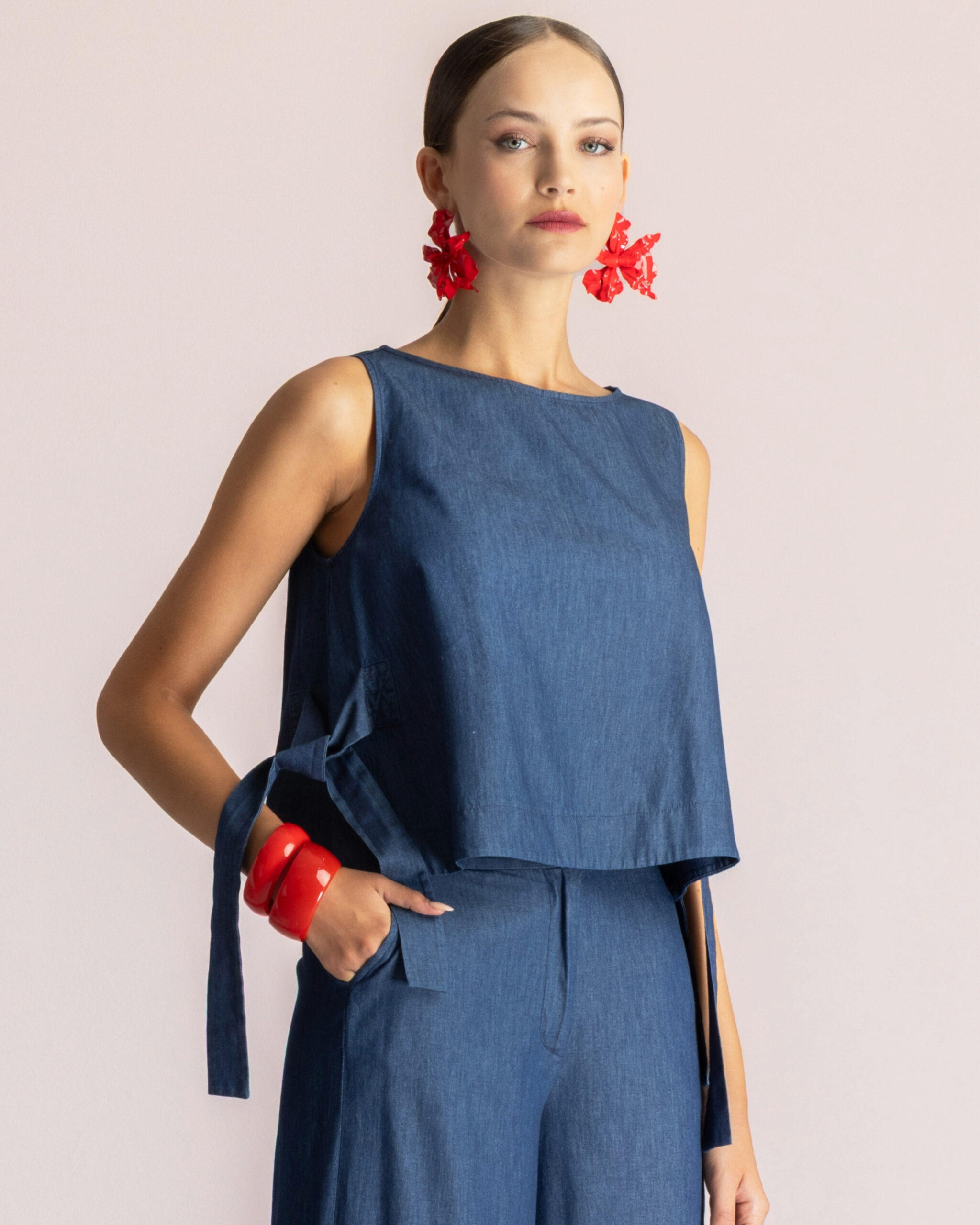 Moutaki Denim Αμάνικο Top Μπλέ