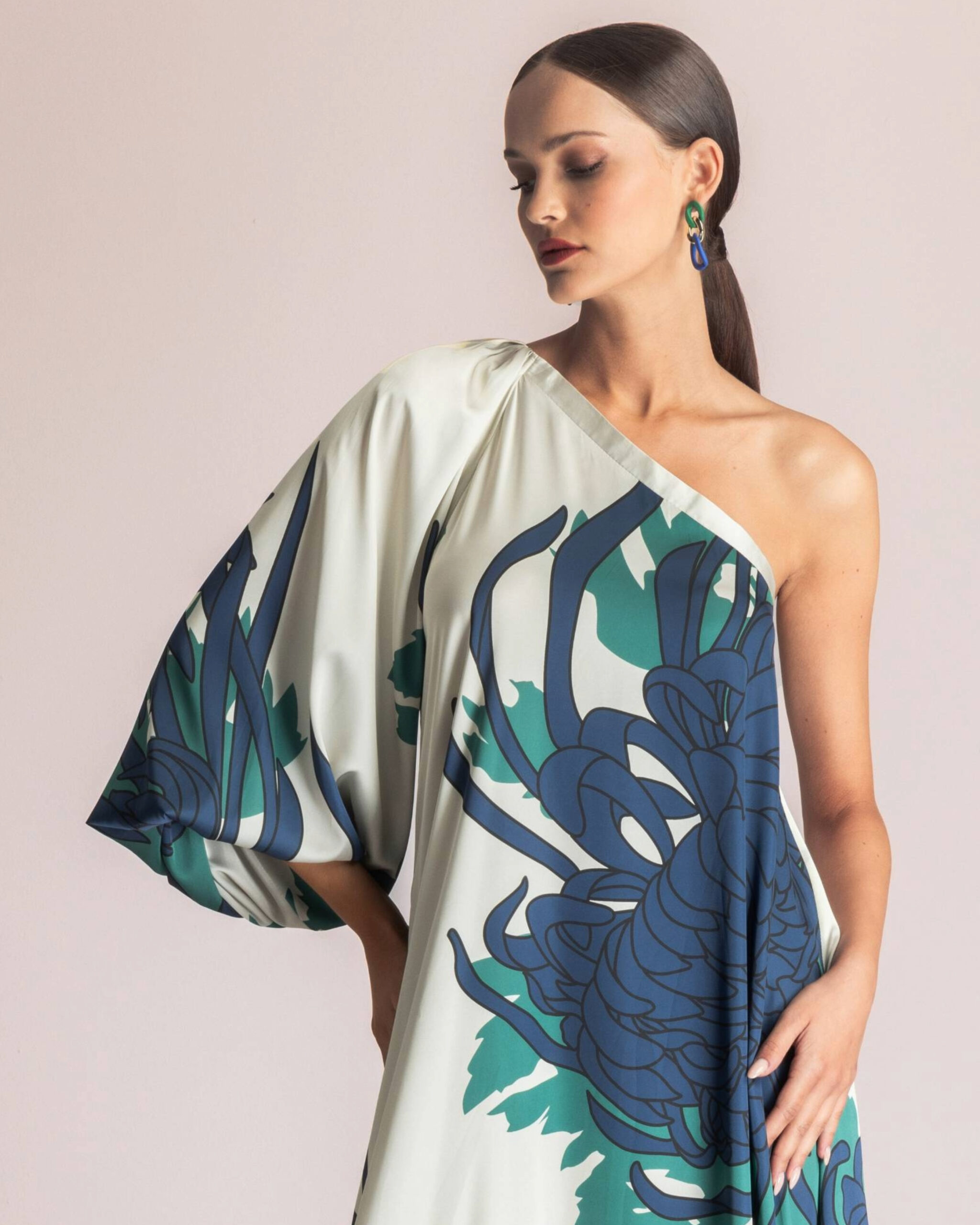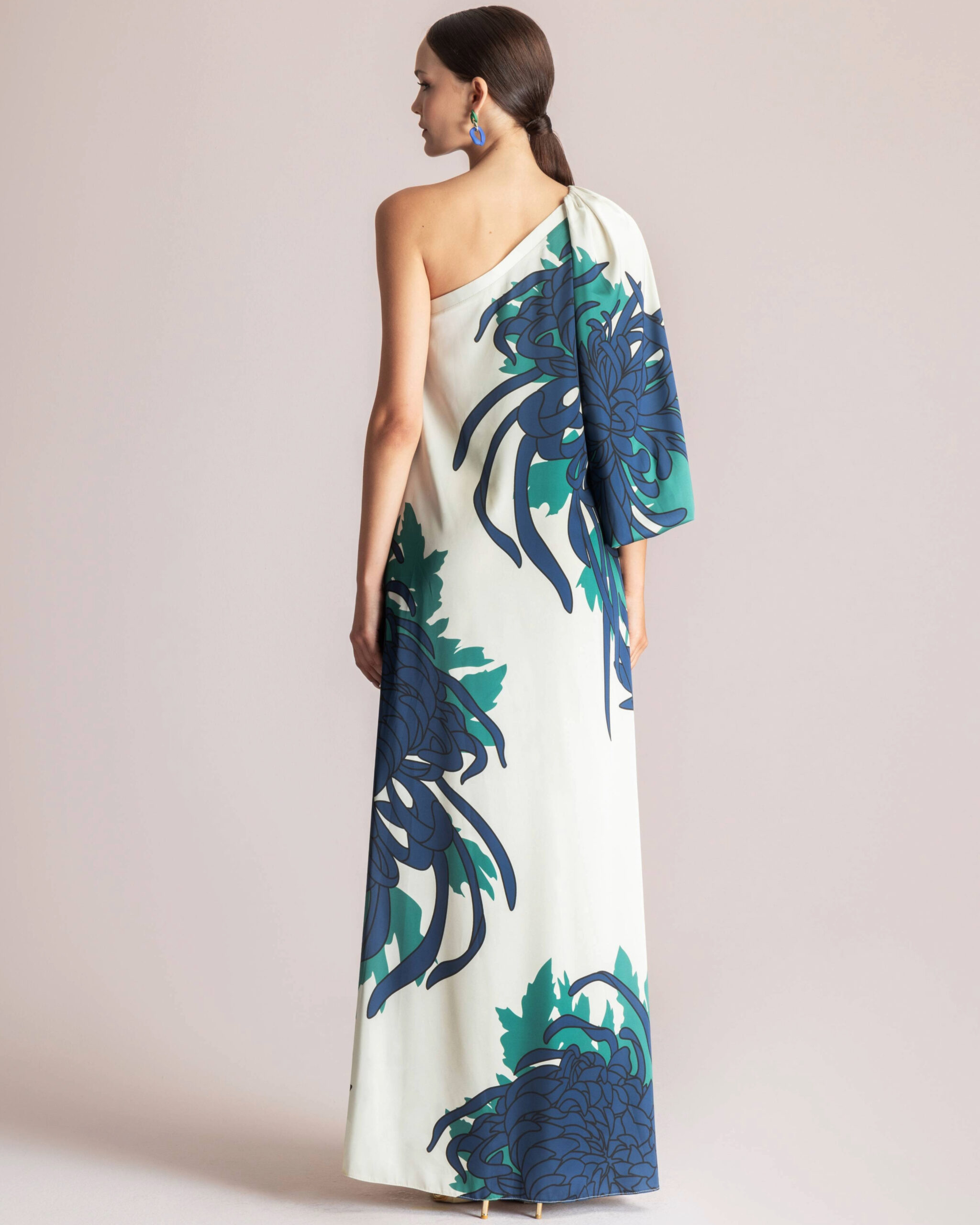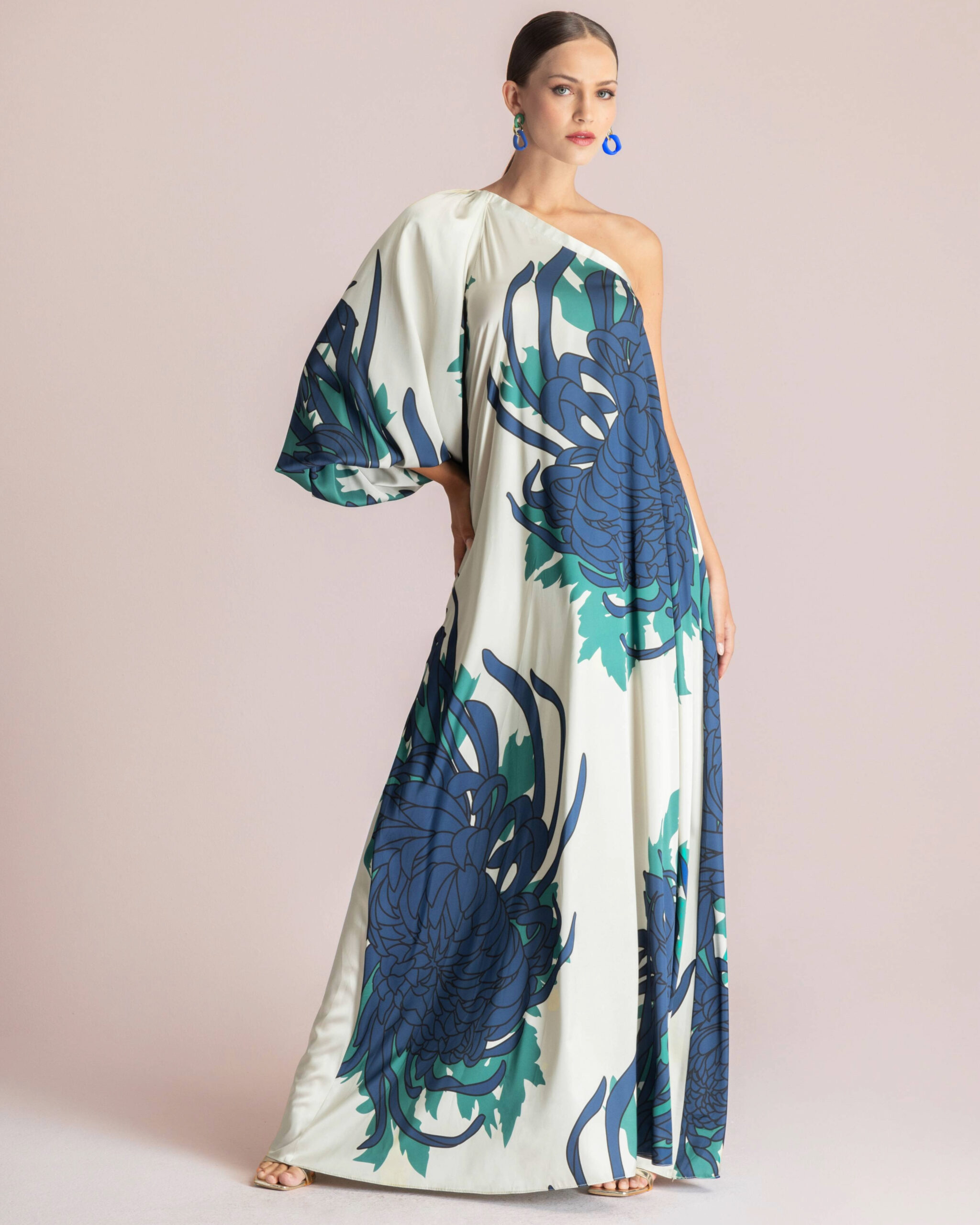 Moutaki Maxi Φόρεμα με έναν ώμο Μπλέ/Πράσινο