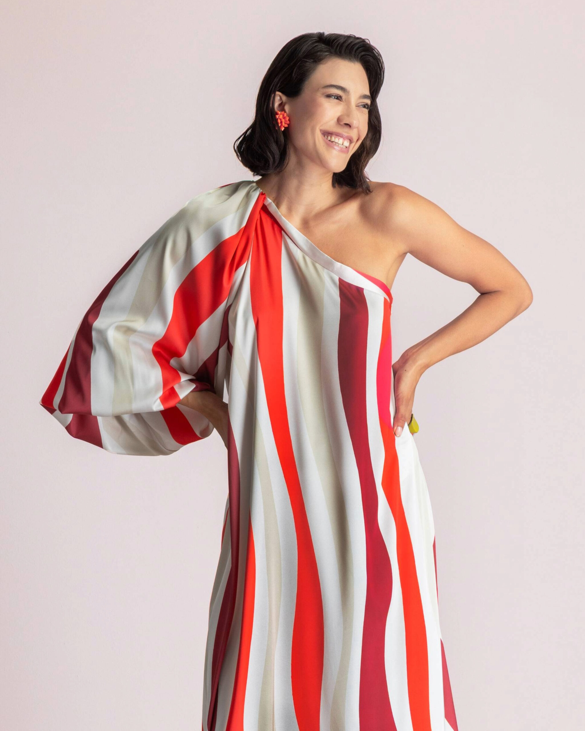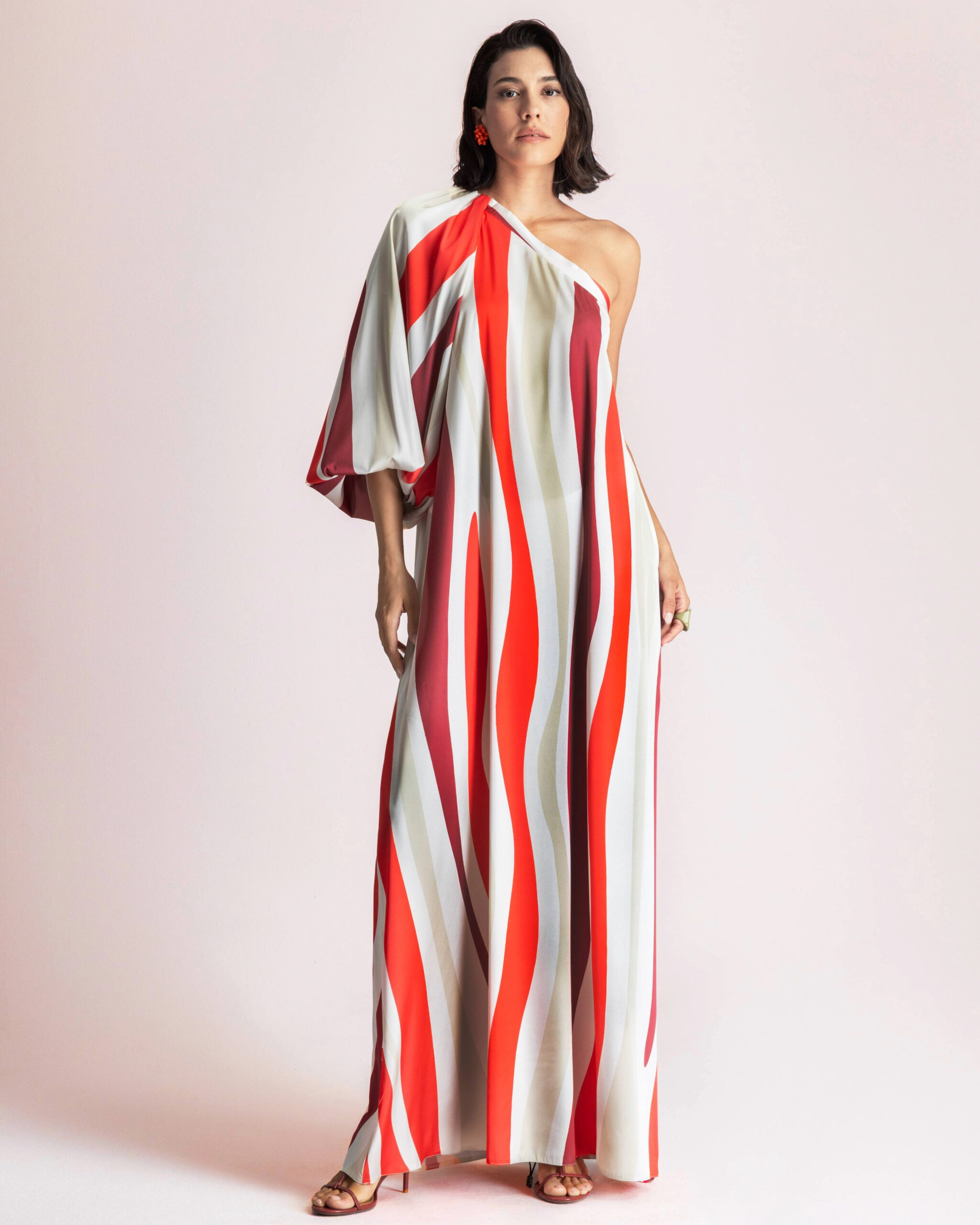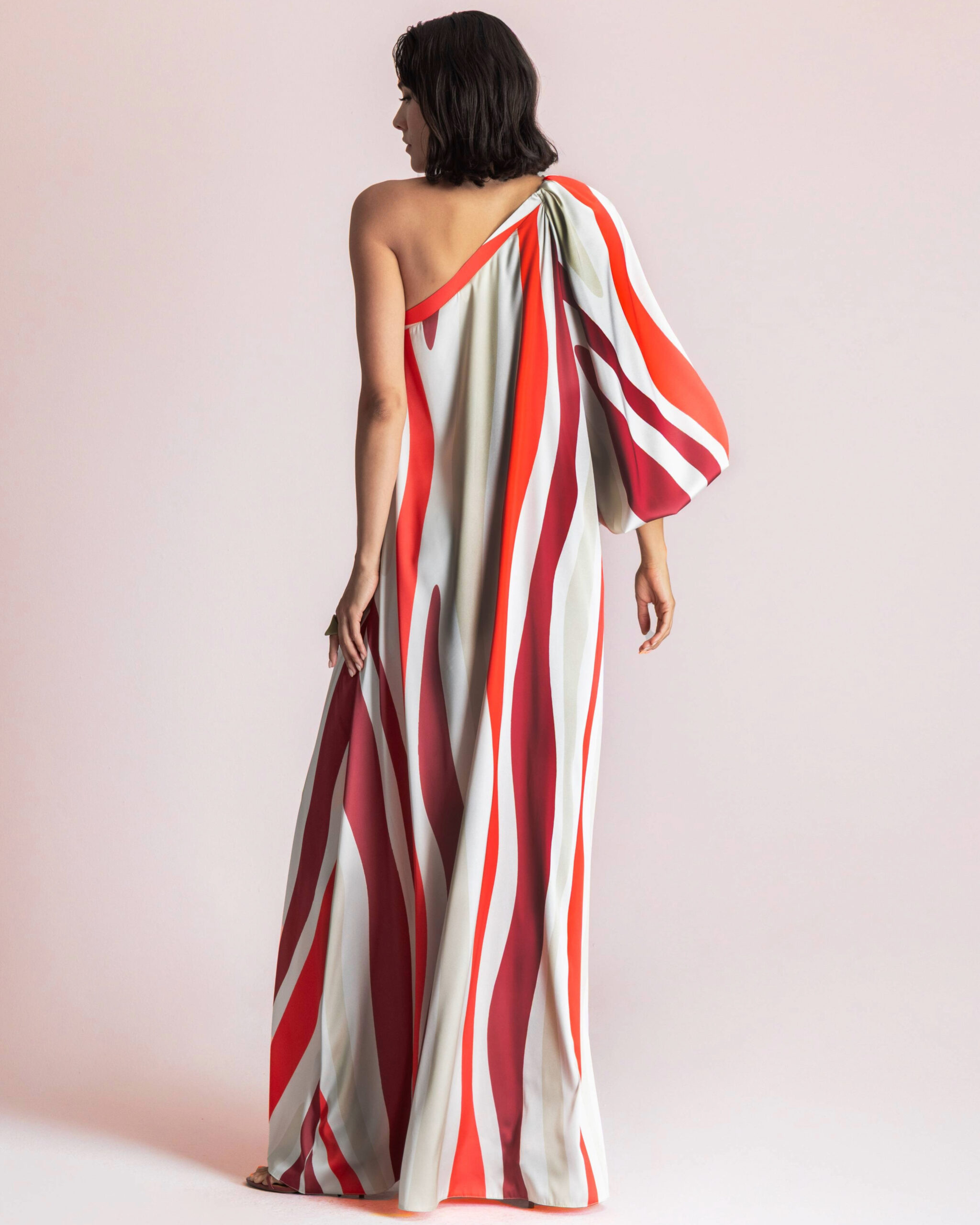 Moutaki Maxi Φόρεμα Ριγιέ με έναν Ώμο Multicolor